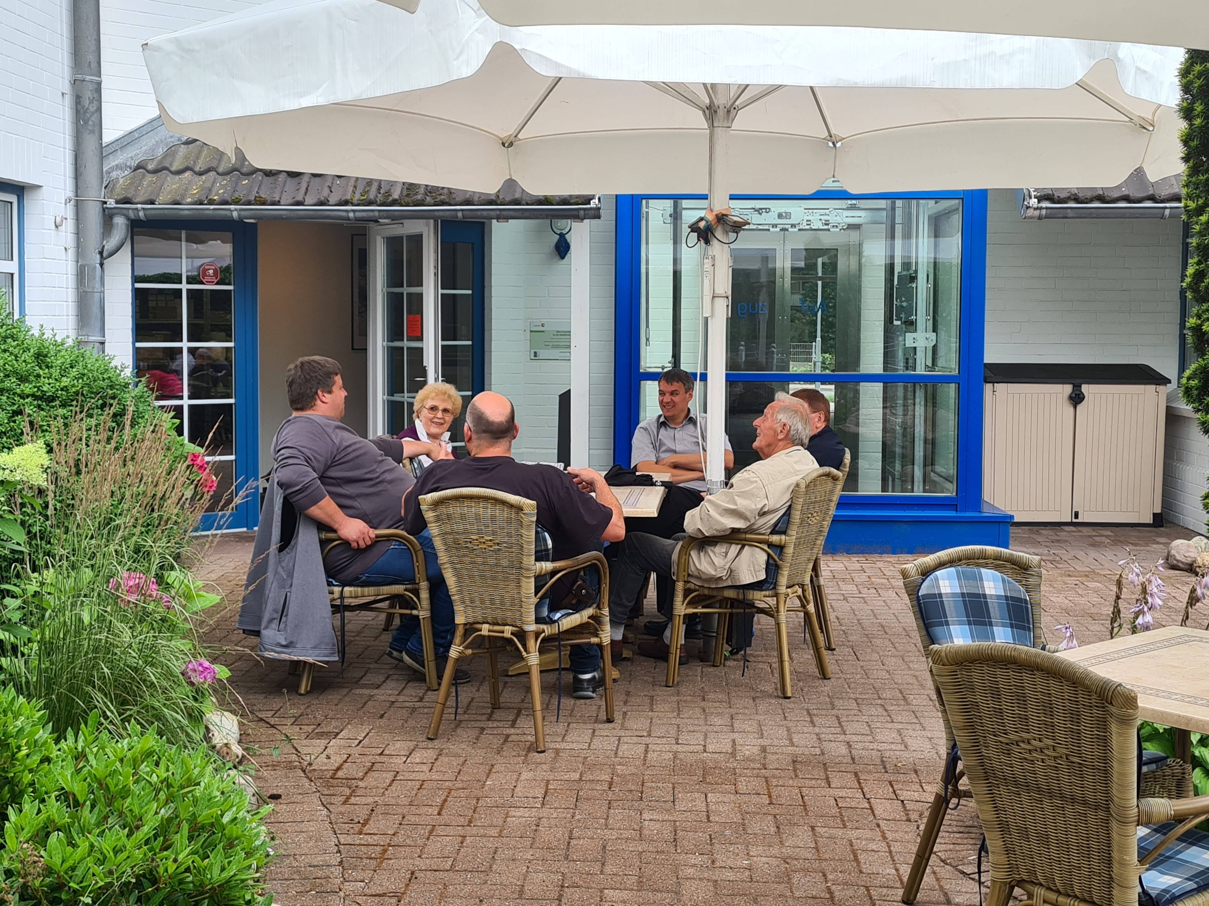 Zum Abschluss kehrten alle wieder zurück nach Kropp, wo der Tag im Biergarten des Wikingerhofs bei einem Abschiedsgetränk in entspannter Atmosphäre ausklang.